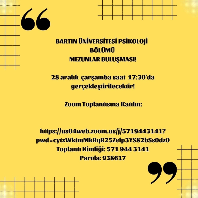 Zoom Meeting bağlantı bilgileri aşağıda yer almaktadır.